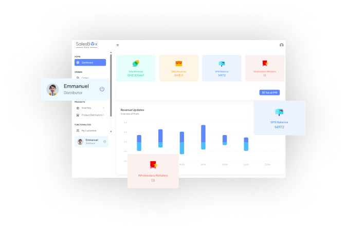 SalesBoxx is an integrated management platform combining USSD, SMS, and CRM functionalities. It manages sales, customer interactions, cash collection, and inventory management, providing a comprehensive solution for businesses.